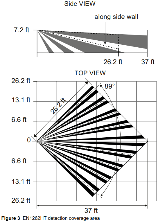 4. Noting the detection coverage in Figure 3, determine mounting location.